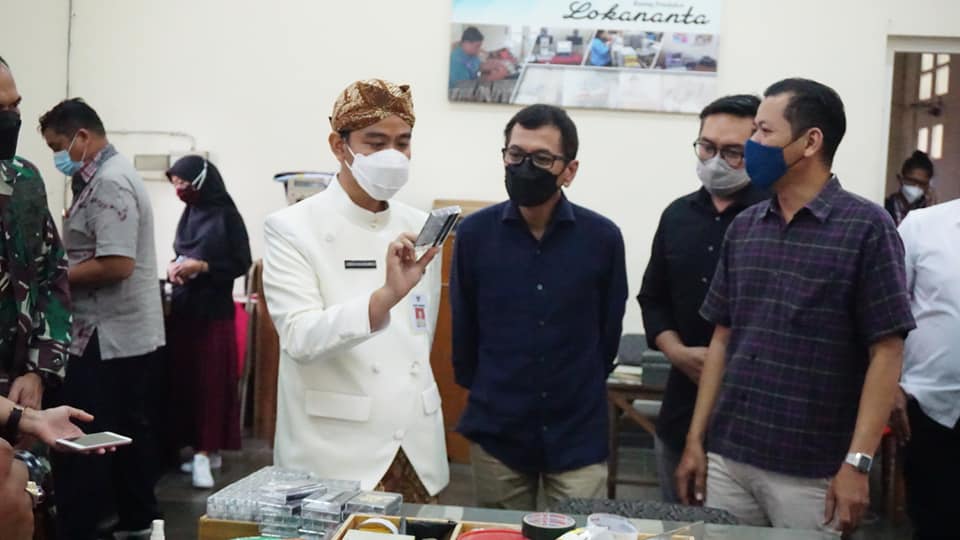 Gibran Rakabuming Raka bersama Wisnutama berkeliling di area Perum PNRI Cabang Surakarta-Lokananta dengan didamping oleh Asisten Manajer Produksi Perum PNRI Cabang Surakarta-Lokananta, Bembi dan Asisten Manajer Pemasaran, Andi serta beberapa jajaran karyawan.