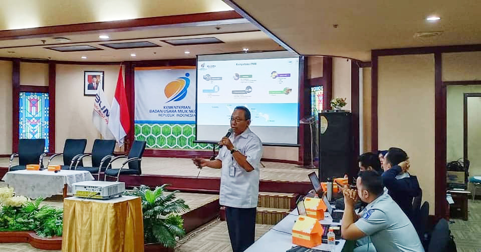 Jakarta (10/2/2020) Sebagai bentuk dukungan terhadap program Kementerian BUMN di Tahun 2020 ini yang salah satunya ialah Mudik Gratis Bareng BUMN 2020, Direktur Produksi dan Pemasaran Perum Percetakan Negara RI (Perum PNRI), Waluyo Pujianto memberikan pemaparan materi terkait Buku Saku Panduan Mudik Bareng BUMN di hadapan jajaran Kementerian BUMN dan PIC dan Co PIC Program dari seluruh BUMN.